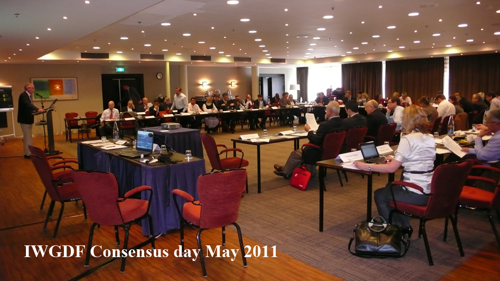 After careful consideration by the IWGDF Editorial Board the 2011 review reports and specific guidelines were sent to the IWGDF representatives from over 100 countries for comments. On a special Consensus Day prior to the 6th International Symposium on the Diabetic Foot (ISDF) in May 2011, all representatives were invited to reach consensus on the three specific guidelines. During that day some additional comments were incorporated in the texts and the final texts were eventually endorsed by the IWDGF representatives. These 2011 review reports and guidelines on wound healing, infection and PAD are published in the Supplement of the DMRR issue February 2012 (see References)